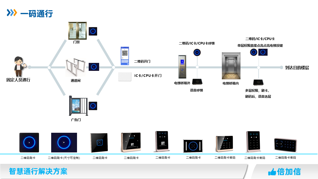 1、一個二維碼通行門禁、梯控、閘機等設備;
